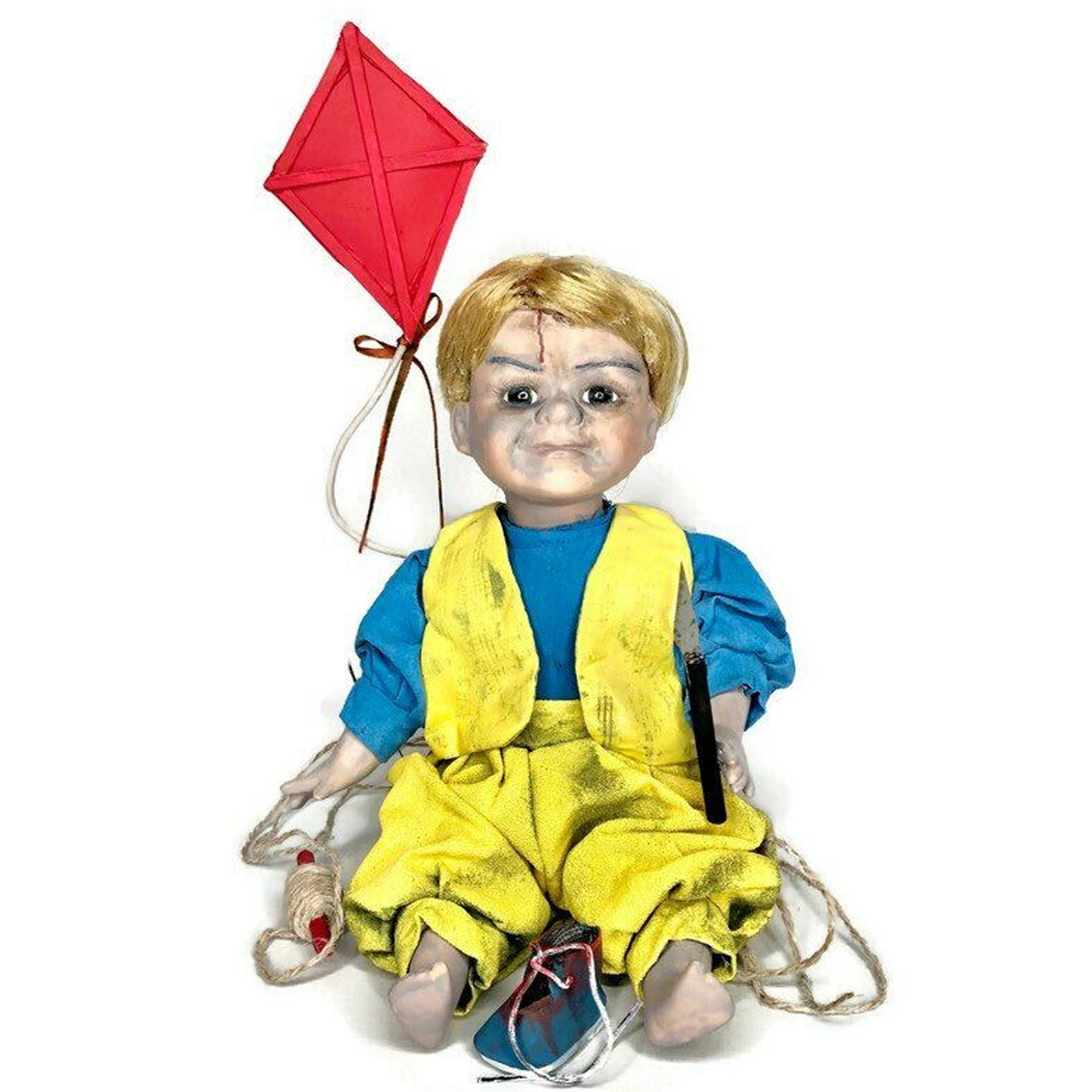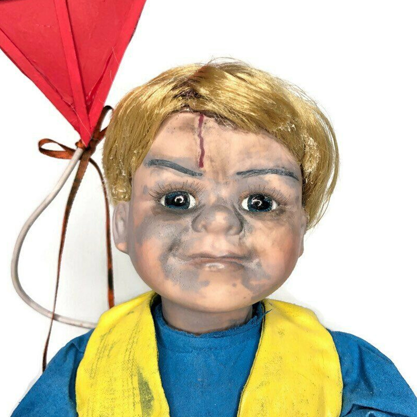 12" Resurrected Gage Doll "Pet Sematary" Stephen King Horror Novel Custom OOAK Numbered and Signed Doll. Inspired by Gage in Stephen King's horror novel Pet Cemetary. Gage was killed by a truck while playing with a kite then resurrected at the Pet Cemetary. He's back and ready to play! This Gage Doll is intended for collection and display only. Not intended for children. Clothes cannot be removed and only light dusting of doll is recommended. This doll is handmade with recycled items and they may contain imperfections. Tagged, numbered, signed with date of rebirth.