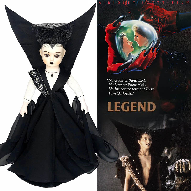 Legend "Dark Lili" (1985) Lord of Darkness Seduces Lili - 21" Fantasy Movie Character Doll (Tagged, dated and signed by artist) This custom doll is intended for collection and display only. Not intended for children. Doll is handmade with recycled items and they may contain imperfections. Original Design by Erika Schulte. Carefully Packaged. Shipped via UPS ground with tracking and insurance.