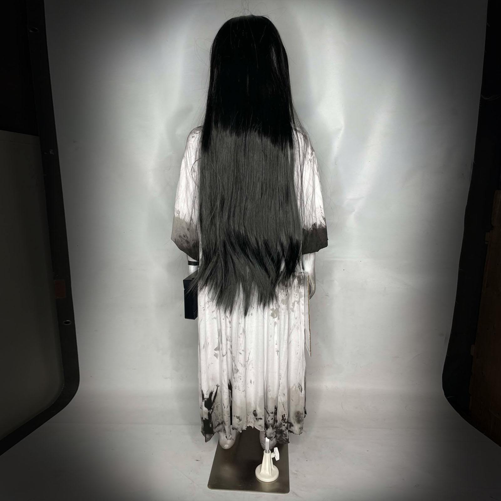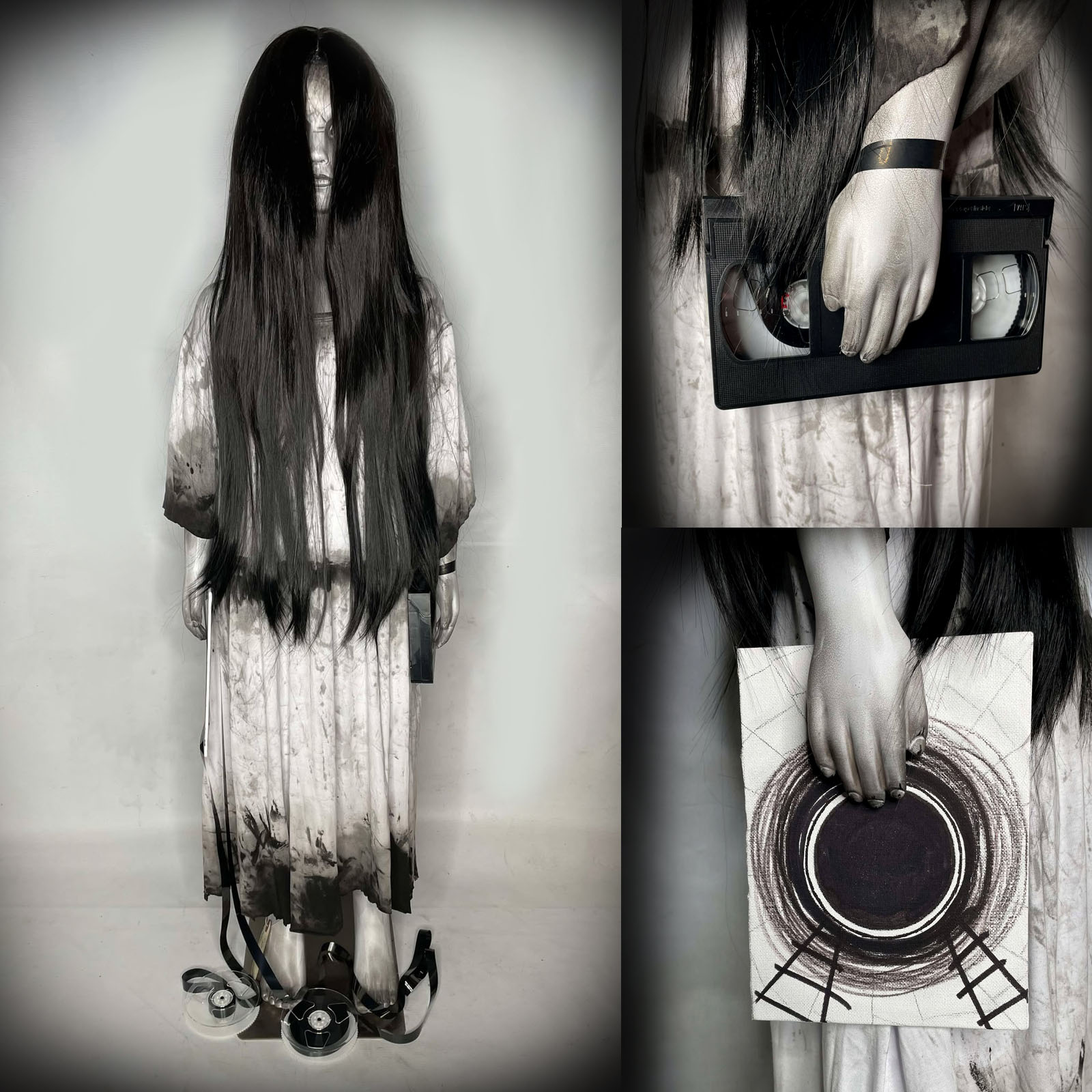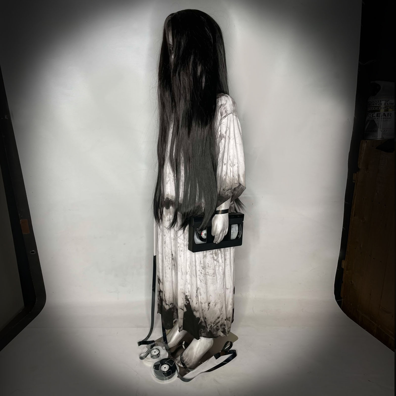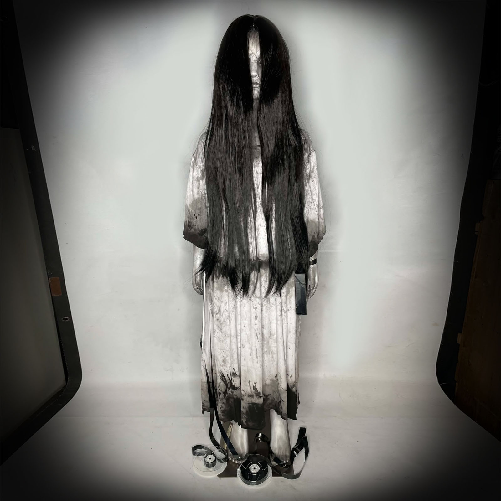 Back by popular demand is Samara Morgan "The Ring" child size horror doll #4 from Erika's Emporium! This one-of-a-kind collectible is 44 inches tall and is sure to send shivers down your spine. Perfect for horror enthusiasts and collectors alike, this doll is a must-have for any prop display or seasonal decoration.