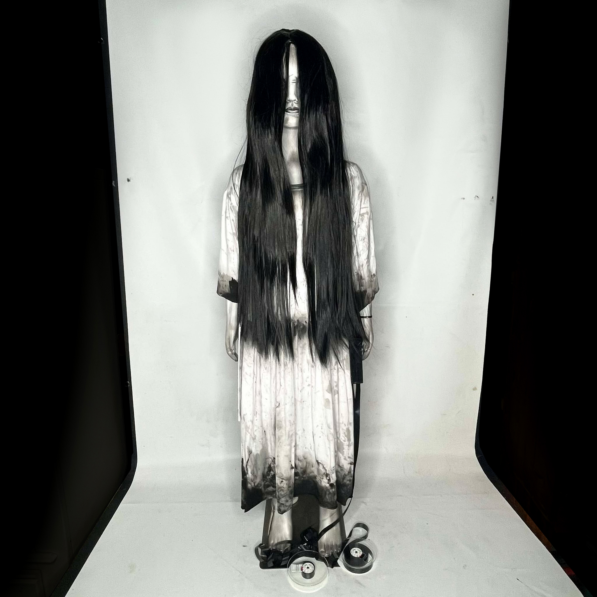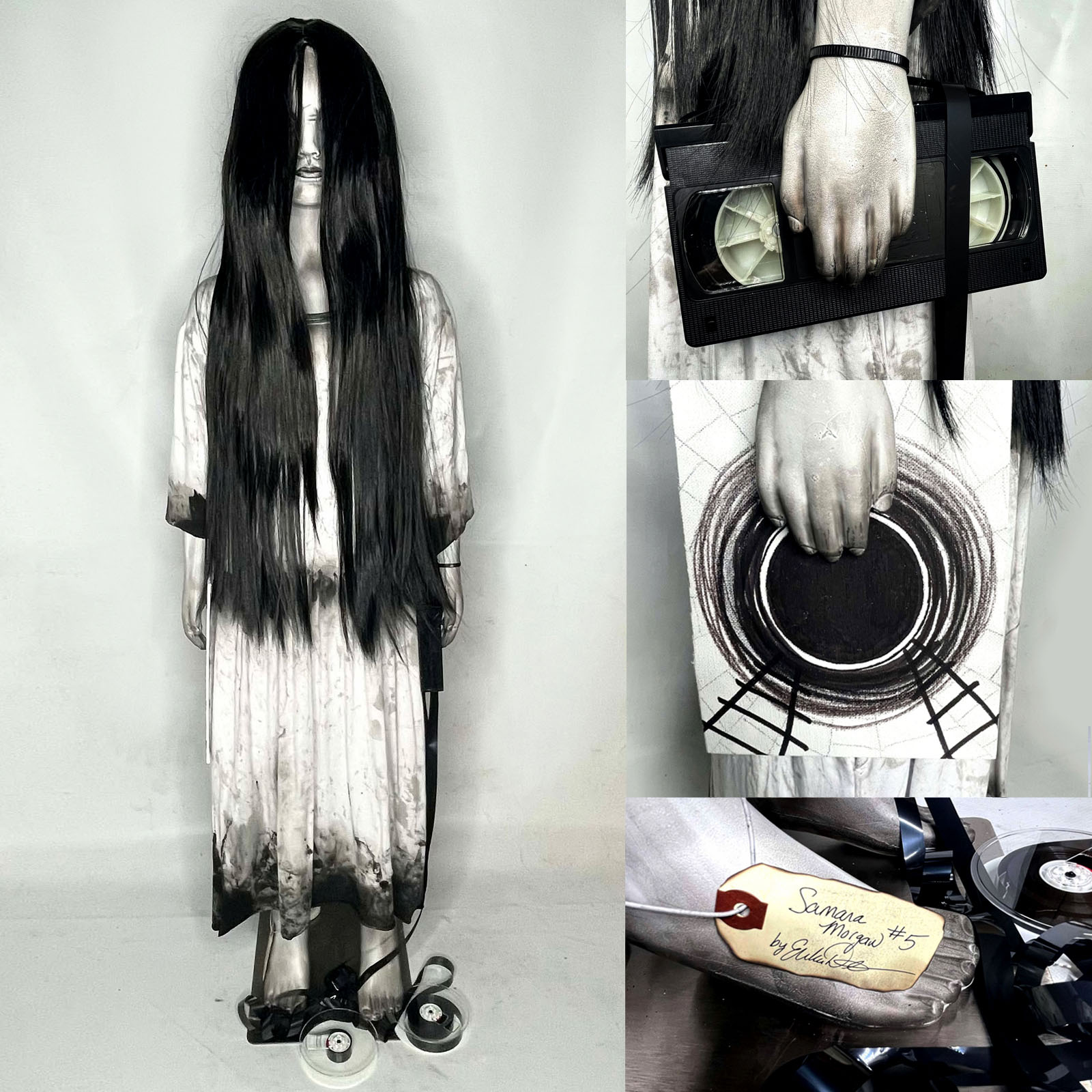Back by popular demand is Samara Morgan "The Ring" child size horror doll #5 from Erika's Emporium! This one-of-a-kind collectible is 44 inches tall and is sure to send shivers down your spine. Perfect for horror enthusiasts and collectors alike, this doll is a must-have for any prop display or seasonal decoration.